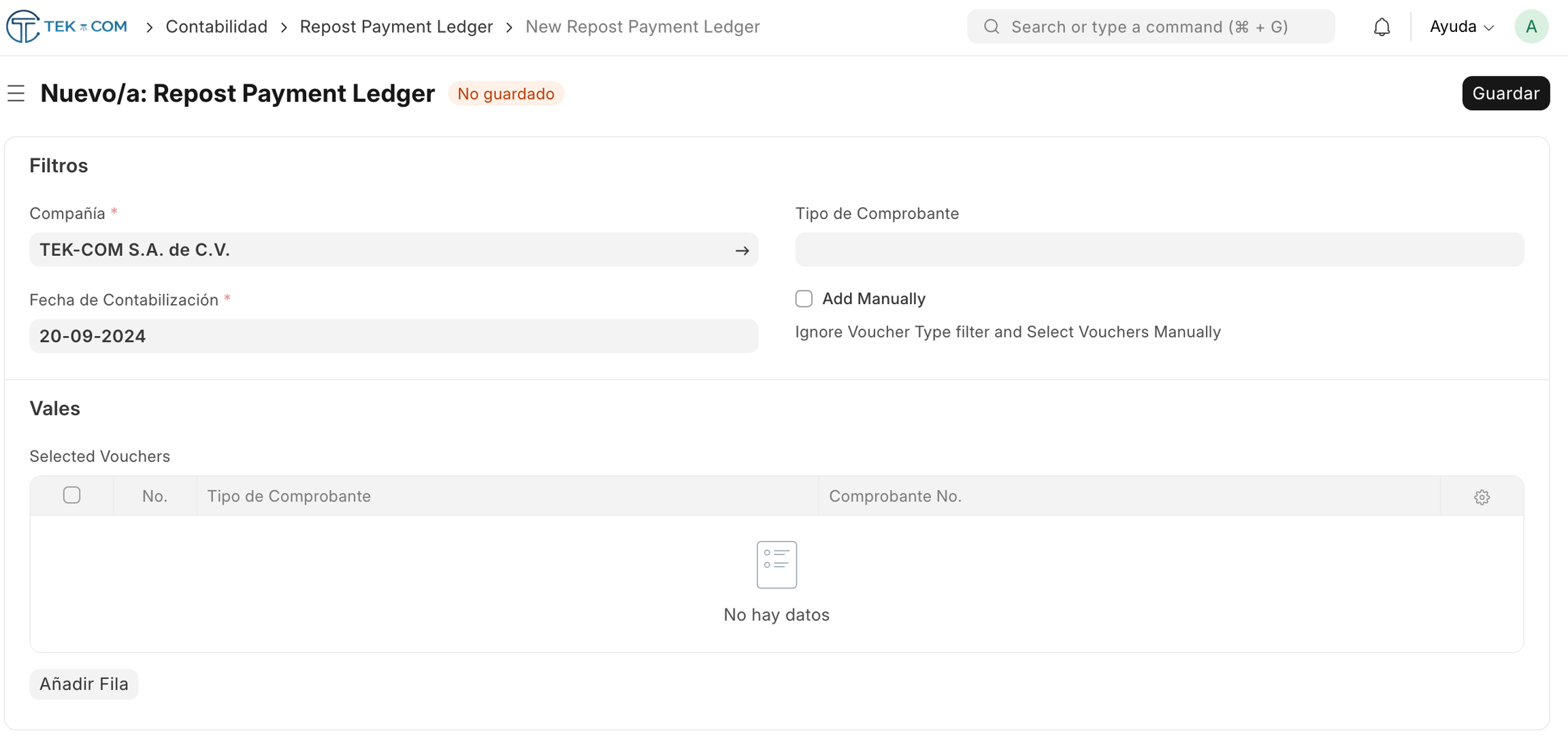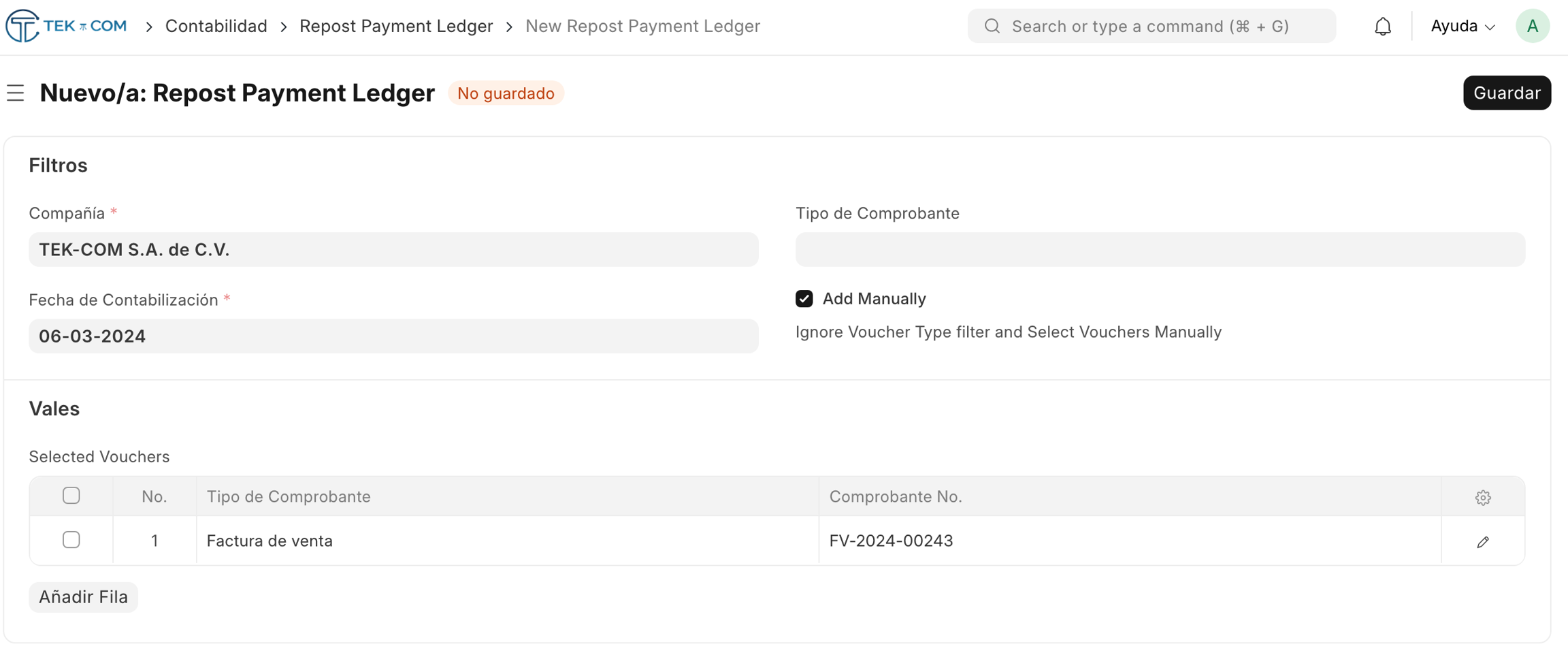 Si desea seleccionar individualmente los documentos a repostear, marque la opción Add Manually